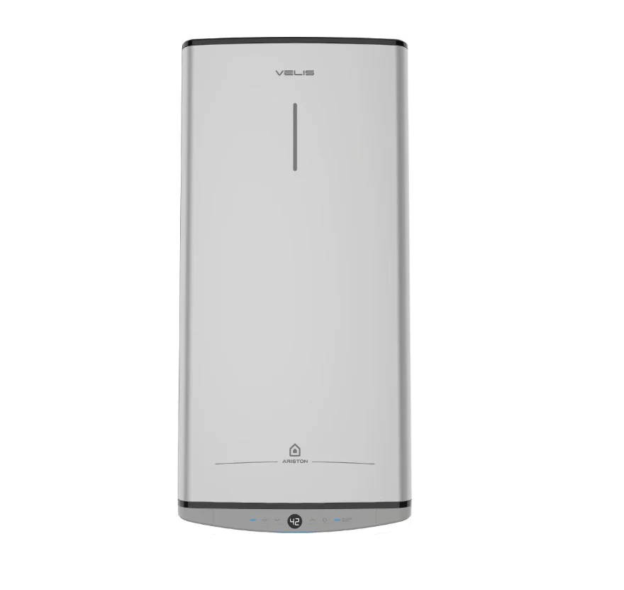 Ariston VELIS TECH 100 EU – це компактний електричний водонагрівач об’ємом 100 літрів із пласким дизайном, що ідеально підходить для сучасних інтер’єрів. Два нагрівальні елементи потужністю по 1,5 кВт забезпечують швидке нагрівання води та енергоефективність класу B. Універсальний монтаж дозволяє встановлювати пристрій вертикально або горизонтально, залежно від потреб. Електронне керування забезпечує точне налаштування температури та зручність у використанні. Вироблений в Італії, він відрізняється високою якістю та стильним сірим корпусом.